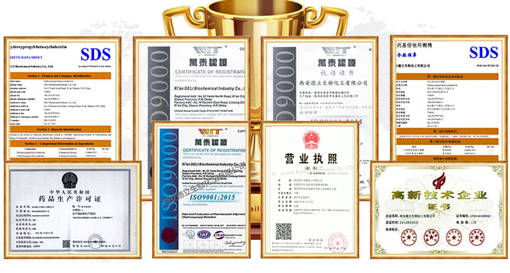 Xi'an Deli Biochemical Industry Co., Ltd. é uma empresa de alta tecnologia especializada em a P&D, produção e vendas de ciclodextrinas e seus derivados. Fornecemos excipientes farmacêuticos para clientes em todo o mundo com qualidade estável e serviço confiável.